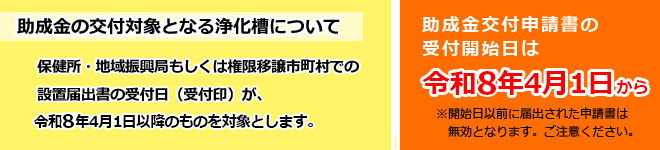 また、申請は浄化槽工事の着工前となりますのでご注意ください。
